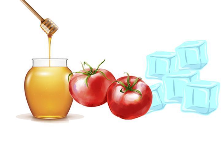 토마토 2개와 꿀 2 큰 술(취향에 따라 조절) 그리고 얼음을 양껏 넣어준다.