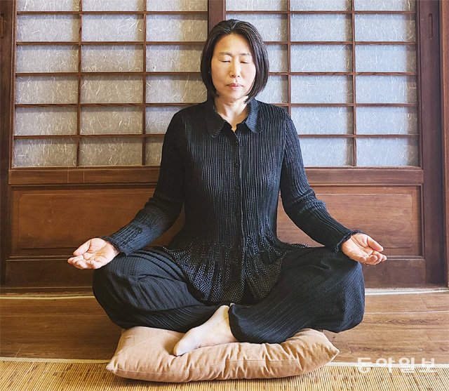 이순심 대표가 편안히 앉아 단공호흡을 하고 있다. 단공호흡은 단전의 기를 비우고 새로운 기를 불어넣는 호흡법으로 심신의 안정을 찾아주는 효과가 있다.