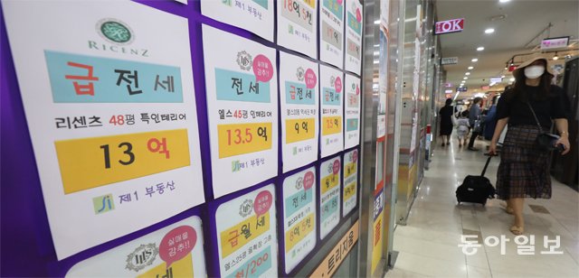7월부터 주택금융공사에서도 전세금반환보증 상품 가입이 가능해진다. 12월부터는 임대차계약 종료 전 자동 연장을 원하지 않을 경우 통보해야 하는 시기가 계약 종료 전 1개월에서 2개월로 앞당겨진다. 사진은 아파트 전세가가 붙어 있는 서울 송파구의 한 공인중개업소. 동아일보DB