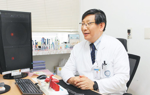 오승준 경희대병원 내분비내과 교수가 환자에게 여름철 당뇨병 관리에 대해 설명하고 있다. 경희대병원 제공