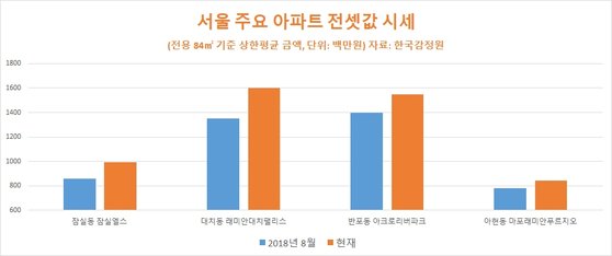 KB국민은행 조사에 따르면 지난달 말 기준 서울 아파트 3.3㎡당 평균 전셋값이 1537만원으로 2년 전보다 10.2% 올랐다. 송파구 가락동이 입주 2년 차로 전셋값이 급등한 9500여 가구의 헬리오시티 영향으로 가장 많이 올랐다. 3.3㎡당 1400만원에서 2120만원으로 50.5% 상승했다. 4억8000만원이던 84㎡가 2억4000만원 오른 7억2000만원이다. 계약갱신청구권을 쓰면 전셋값 인상 한도가 10분의 1인 2400만원이다. 시장 가격과 규제 가격의 차이가 너무 큰 것이다.