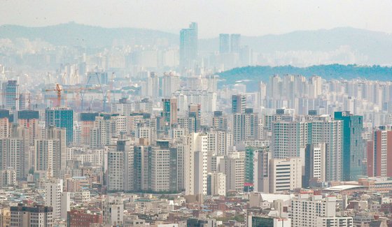 주택 부부공동명의가 크게 늘고 있지만 종부세에서 1주택이더라도 장기보유 등 공제를 받지 못해 논란이 일고 있다. 서울 남산에서 바라본 시내 아파트 단지 모습. 연합뉴스