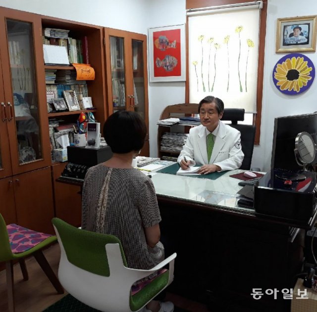 백명기 원장(오른쪽)이 환자와 상담하고 있다. 신경정신과전문의로 탈모치료 전문가가 된 그는 “머리는 젊음의 상징이고 자존심이다”고 강조했다.