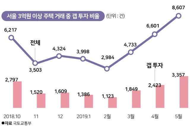 27일 박상혁 더불어민주당 의원이 국토교통부로부터 제출받은 자료에 따르면, 2018년 10월부터 지난해 5월까지 보증금 승계로 매매된 3억원 이상 서울 주택은 1만6,064건으로 3억원 이상 전체 거래 중 39.2%를 차지한 것으로 조사됐다. 업계에서는 다음달부터 8개월 동안 수천 건의 전세 만료가 도래할 것으로 전망한다.