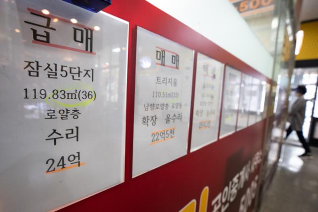 21일 서울의 한 공인중개사무소에 아파트 매물정보가 붙어있다. 뉴스1