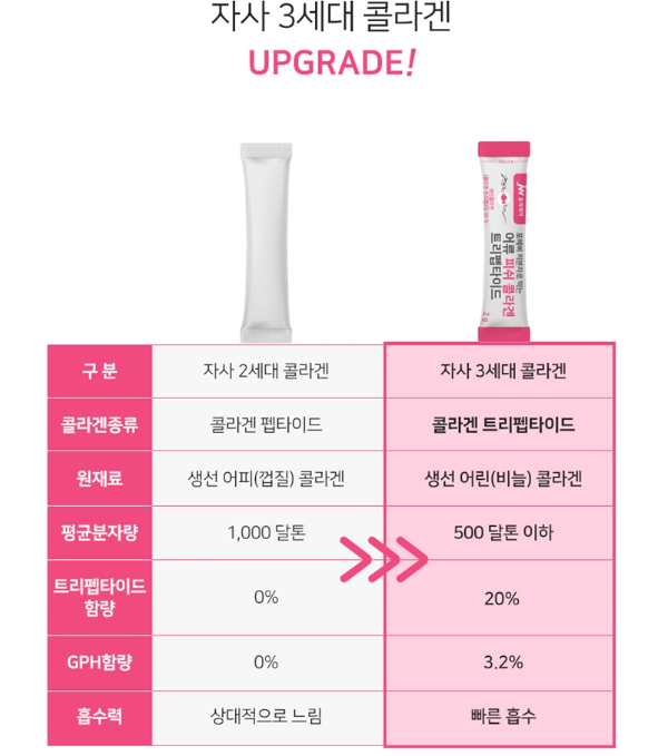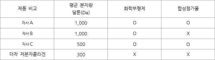 콜라겐에서 가장 중요한건 분자크기에 따른 흡수율입니다.