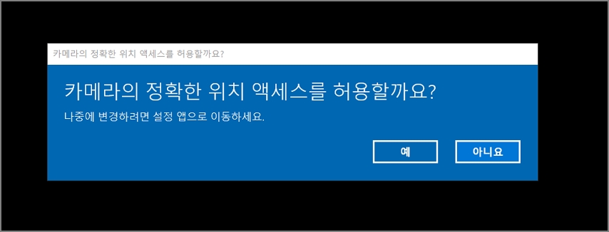 ▼ 카메라의 정확한 위치 엑세스를 허용할까요? 메뉴가 나올수도 있습니다. 예를 누르시면 됩니다. 이 확인 창이 안 나와도 상관은 없습니다.