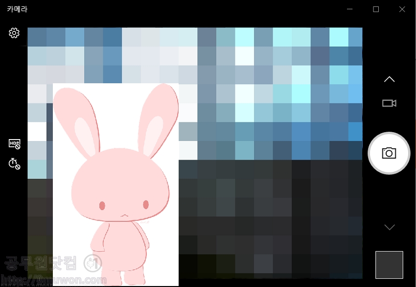 ▼ 그러면 바로 카메라에 자신의 토끼 같은 얼굴이 나옵니다. 얼굴이 정상적으로 나온다면 잘 작동하고 있는 겁니다. 오래된 카메라인데도 너무 얼굴이 똑같이 나와서 놀랐습니다. 카메라가 실행되지 않으면, 아래 오류 해결방법을 참고하세요.