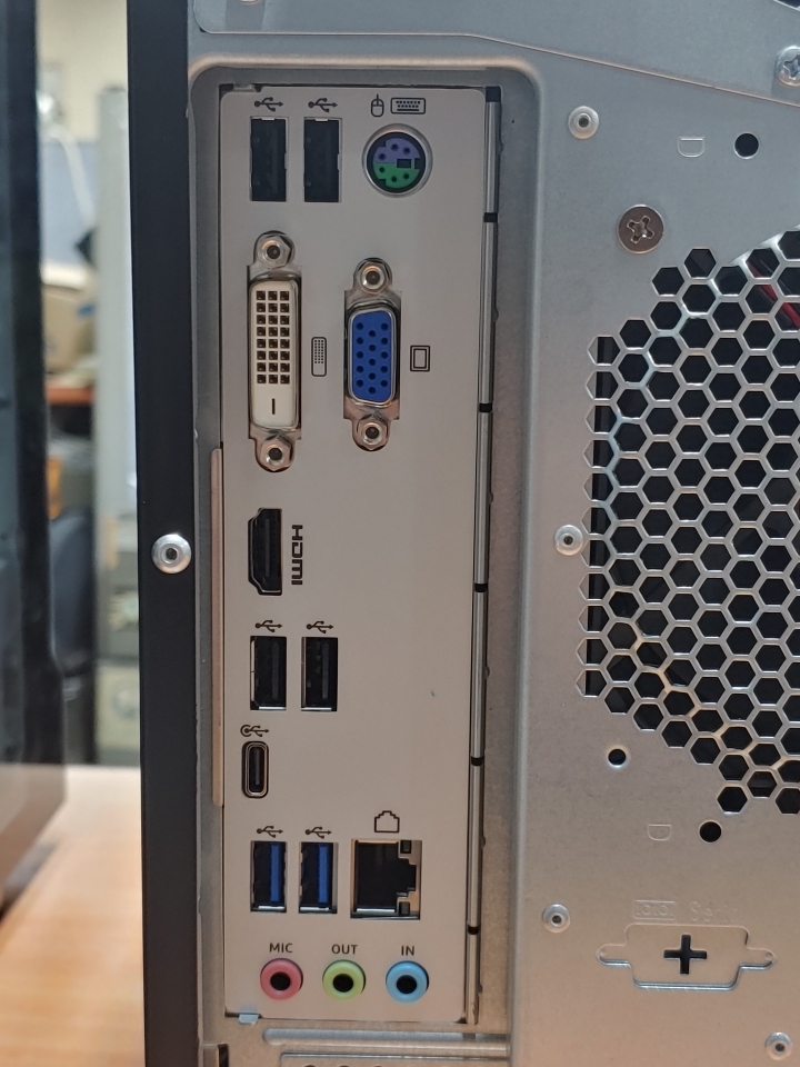 포트는 전면에 DVD Dual(5.25인치), 마이크로 SD카드 슬롯, 헤드폰+마이크 콤보, USB 3.0 x2가 제오된다. 후면에는 PS/2 x1, 헤드폰 출력 x1, 마이크 입력 x1, USB 3.0 x2, USB 2.0 x4, USB Type-C x1, RJ-45 x1, D-SUB x1, DVI x1, HDMI x1 구성이다. 상당히 많은 포트를 제공한다. 이는 메인보드 칩셋이 인텔 H470 기반이기 때문이다. H470 칩셋 제품군은 고급형 제품에 해당되며 CPU 배수 오버클럭만 미지원하는 정도다.