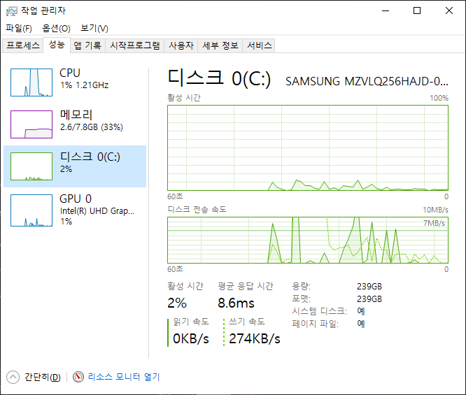 저장장치 – 256GB NVMe SSD