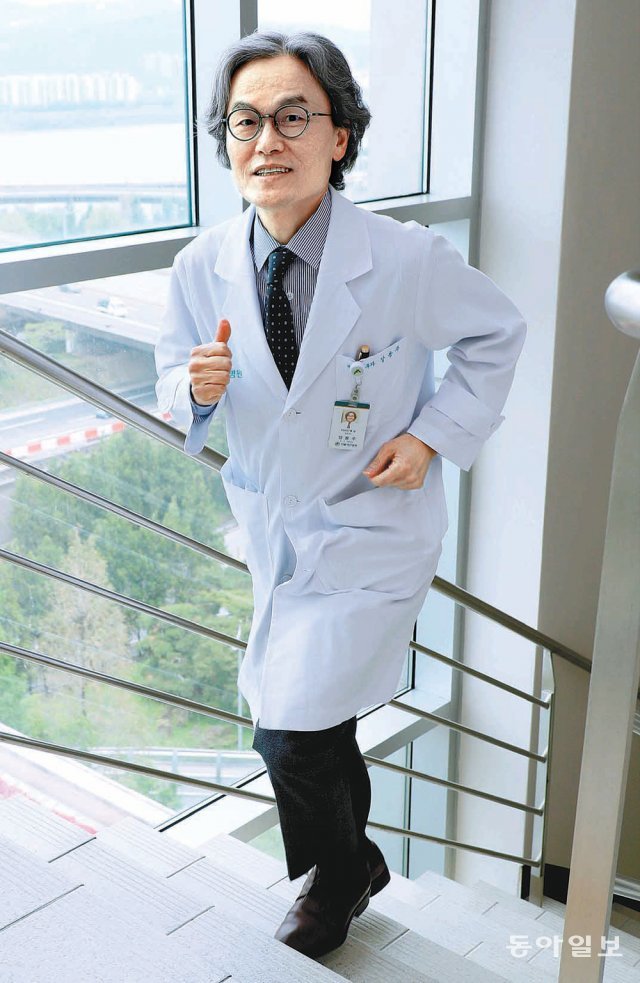 장용주 서울아산병원 이비인후과 교수(58)는 오전에 출근하면 지하 주차장에서 연구실이 있는 10층까지 계단으로 걸어 올라간다. 점심시간에는 일부러 지하까지 내려갔다가 다시 연구실까지 걸어 올라간다. 퇴근하면 아파트 계단을 오른다.
