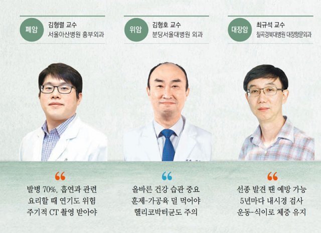 폐암은 서울아산병원 흉부외과 김형렬 교수, 위암은 분당서울대병원 외과 김형호 교수, 대장암은 칠곡경북대병원 대장항문외과 최규석 교수, 췌장암은 서울아산병원 간담도췌외과 김송철 교수, 간암은 서울대병원 외과 서경석 교수의 조언을 받았다.