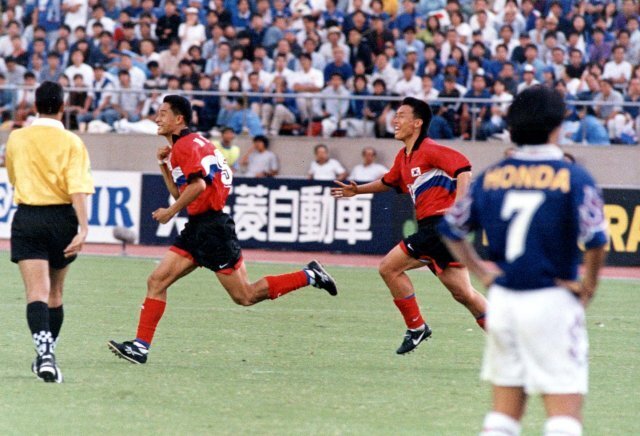 ▲ “후지산이 무너지고 있습니다.” : 1997년 9월 일본 도쿄 프랑스월드컵 아시아 예선 한일전. 이민성의 극적인 역전골(2-1)이 터지자.