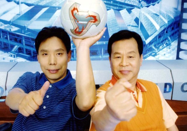 한때 축구 중계의 황금 콤비로 불린 송재익 캐스터(오른쪽)와 신문선 해설위원.