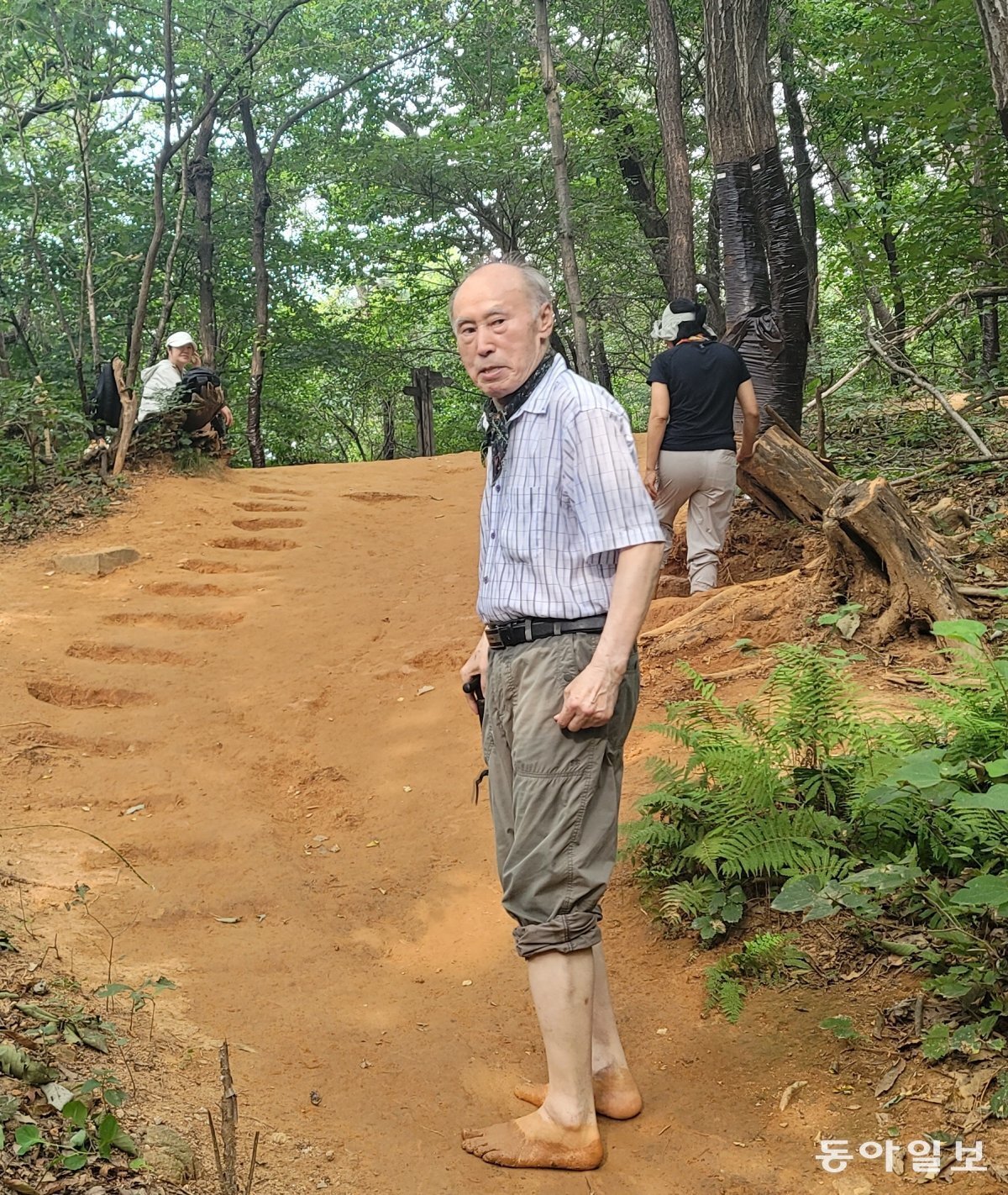 이 이사장은 “지인의 말을 들은 뒤 박동창 맨발걷기국민운동본부 회장(71)이 쓴 ‘맨발로 걸어라’란 책을 봤다. 일리가 있는 얘기라고 생각해 걷기 시작했다”고 했다. 박 회장은 맨발 걷기로 건강이 좋아진 뒤 그 효과를 홍보하고 있다. ‘맨발로 걷는 즐거움’ ‘맨발로 걸어라’ ‘맨발 걷기의 첫 걸음’ ‘맨발 걷기가 나를 살렸다’ 등 책도 썼다. 2016년부터 서울 대모산에서 맨발걷기숲길힐링캠프를 운영하고 있는 박 회장은 “맨발로 걸으면 지압효과와 접지효과(Earthing)로 면역력이 좋아진다”고 주장하고 있다.