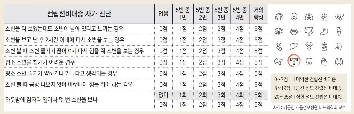 배 교수는 “이런 증세 가운데 빈뇨와 야간뇨가 전립선비대증 초기 때부터 자주 나타나는 증세”라고 설명했다.
